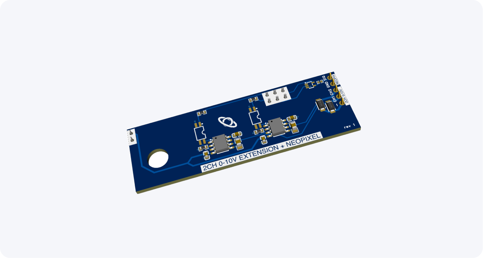 Section titled “2x 0-10V & Neopixel”Umožňuje zapojení 2 kanálů pro drivery 0/1-10V a jeden NEOPIXEL.
