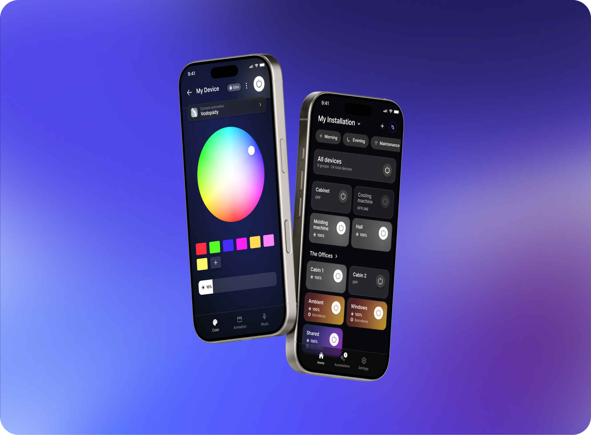 - Automatizace a scény – možnost spouštět světelné scény a časové scénáře.